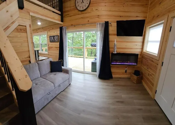 Die 1-Zimmer- New! Pine Ridge Tiny Cabin With Hot Tub! bietet seinen Gästen ein entspannendes Erlebnis mit einem Jacuzzi.
